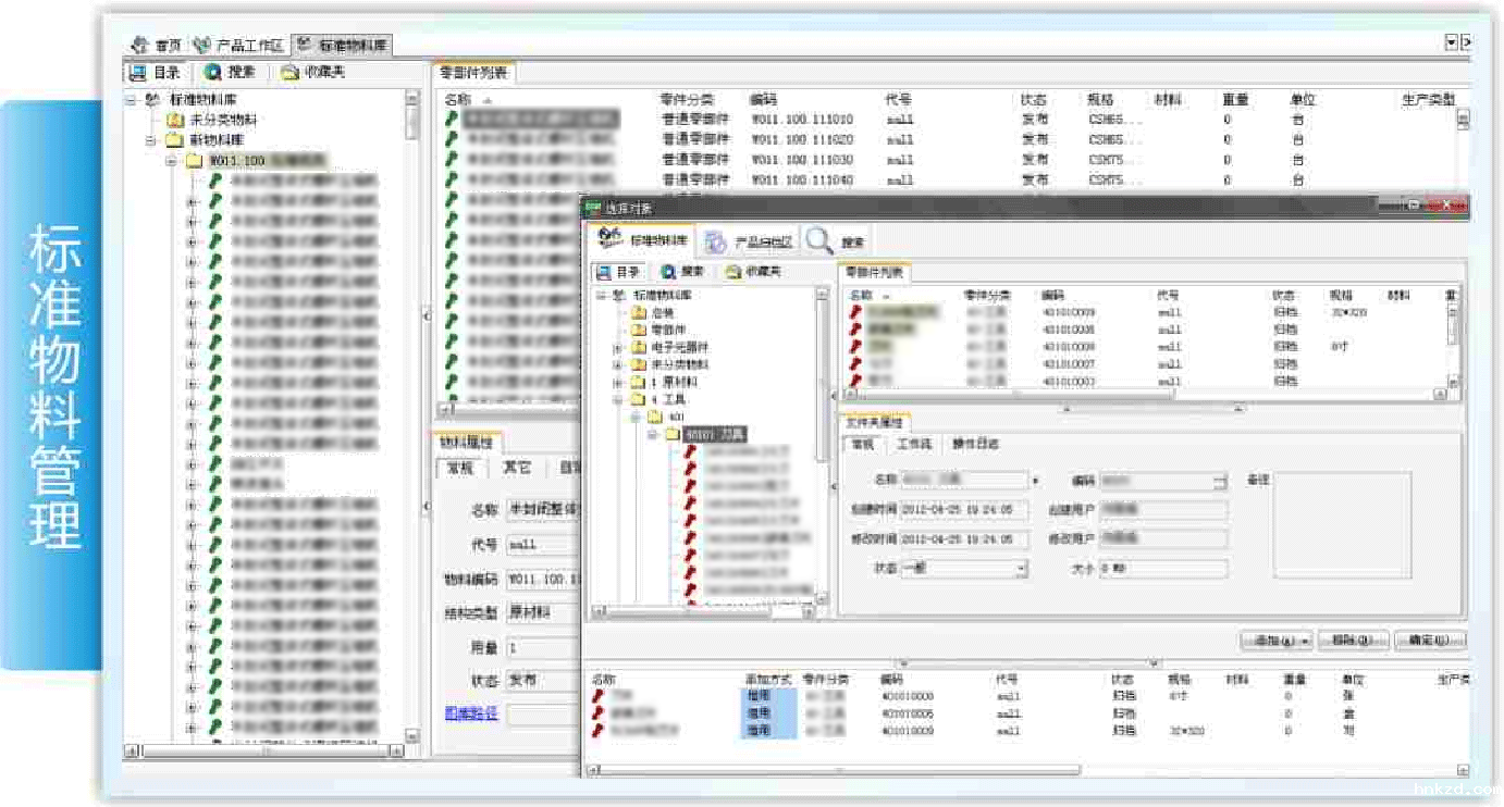 ●进一步,在hnkzdPLM导入历史数据,建立了一个企业设计、工程、采购等部门都可以广泛访问的标准物料库和零部件库。设计人员从物料库中可以非常方便地查询和使用各种合规的标准物料,物料的状态直接识别出这些物料是否能被重用。如需新增加物料,企业设定了物料申请审批程序,并在标准物料库中做足充分分析后,才给往标准物料库中增加。通过这一系列的梳理,产品物料的使用变的真正可靠和有保障,新增加的物料数量大幅减少。