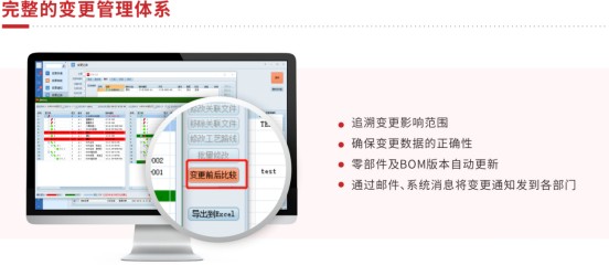 2. 多层级BOM:可维护EBOM(设计)、PBOM(工艺)、MBOM(制造)等结构,通过基线、版本、变更单进行差异比较与影响分析。