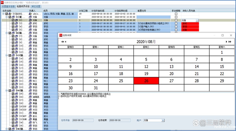 项目经理调用模板,快速形成项目计划,维护项目资源时,智能显示项目任务冲突,及时调整任务责任人。